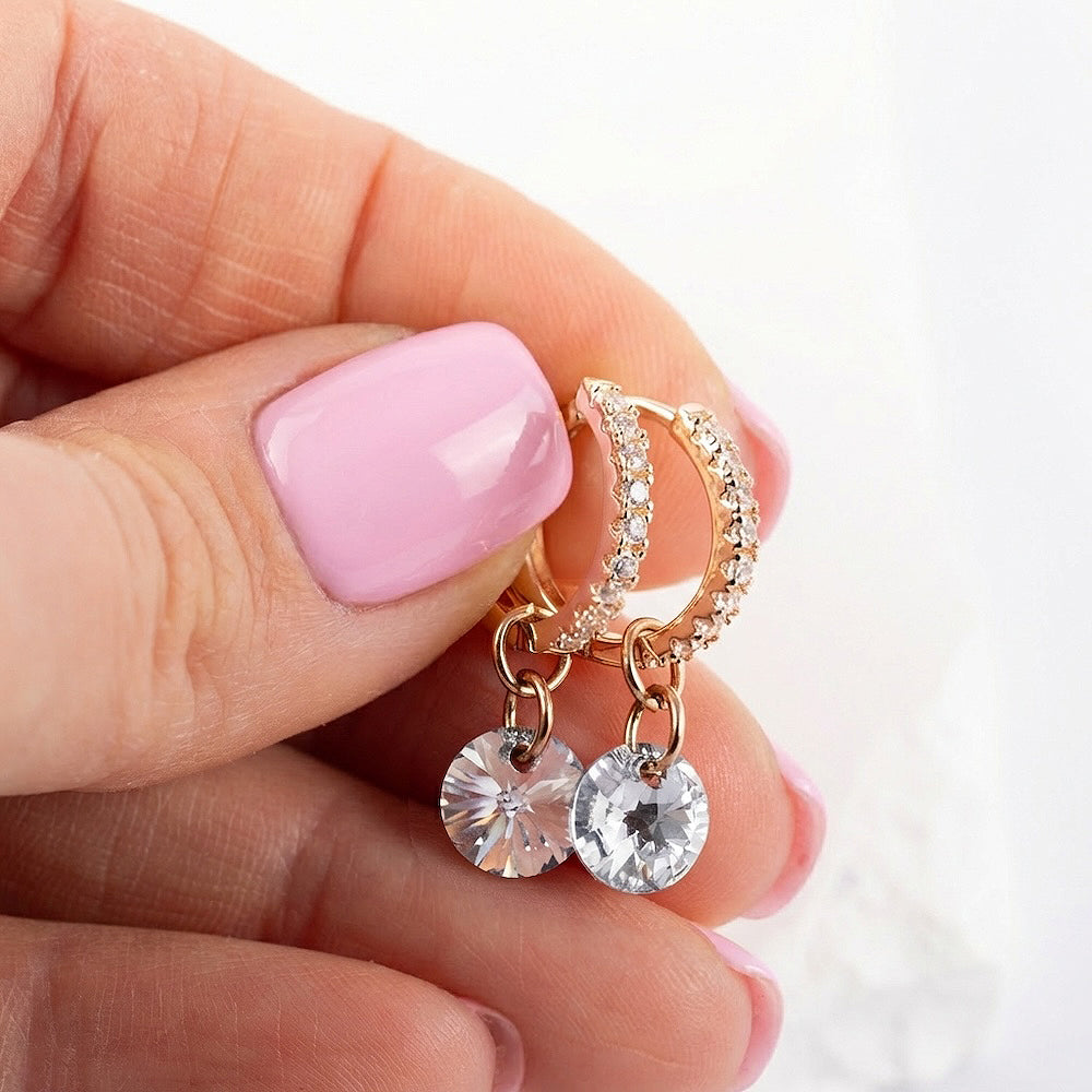 Nēsā tikai kristālu riņķīšus vai papildini tos ar izsmalcinātiem piekariņiem. Divi zaķi ar vienu šāvienu jeb divi pāri auskaru par vienu cenu!