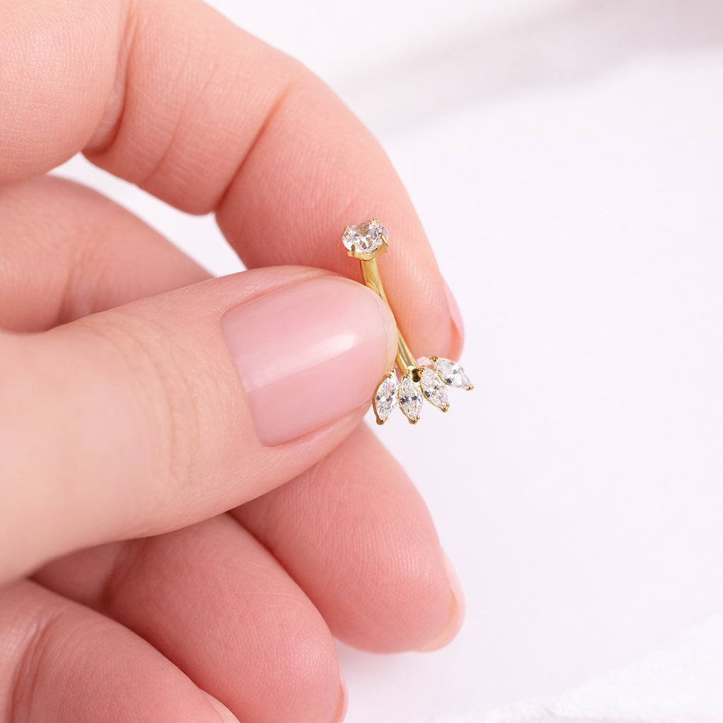 Apzeltīti un apsudraboti pīrsingi ar kristāliem. Pīrsingu kolekcijā atradīsiet dažādas stilīgas un oriģinālas rotaslietas, kas piemērotas caurumiem dažādās auss vietās, piemēram, hēlikss un labretes tipa pīrsings. Piedāvājam arī pīrsingus bez kristāliem dažādās formās.
