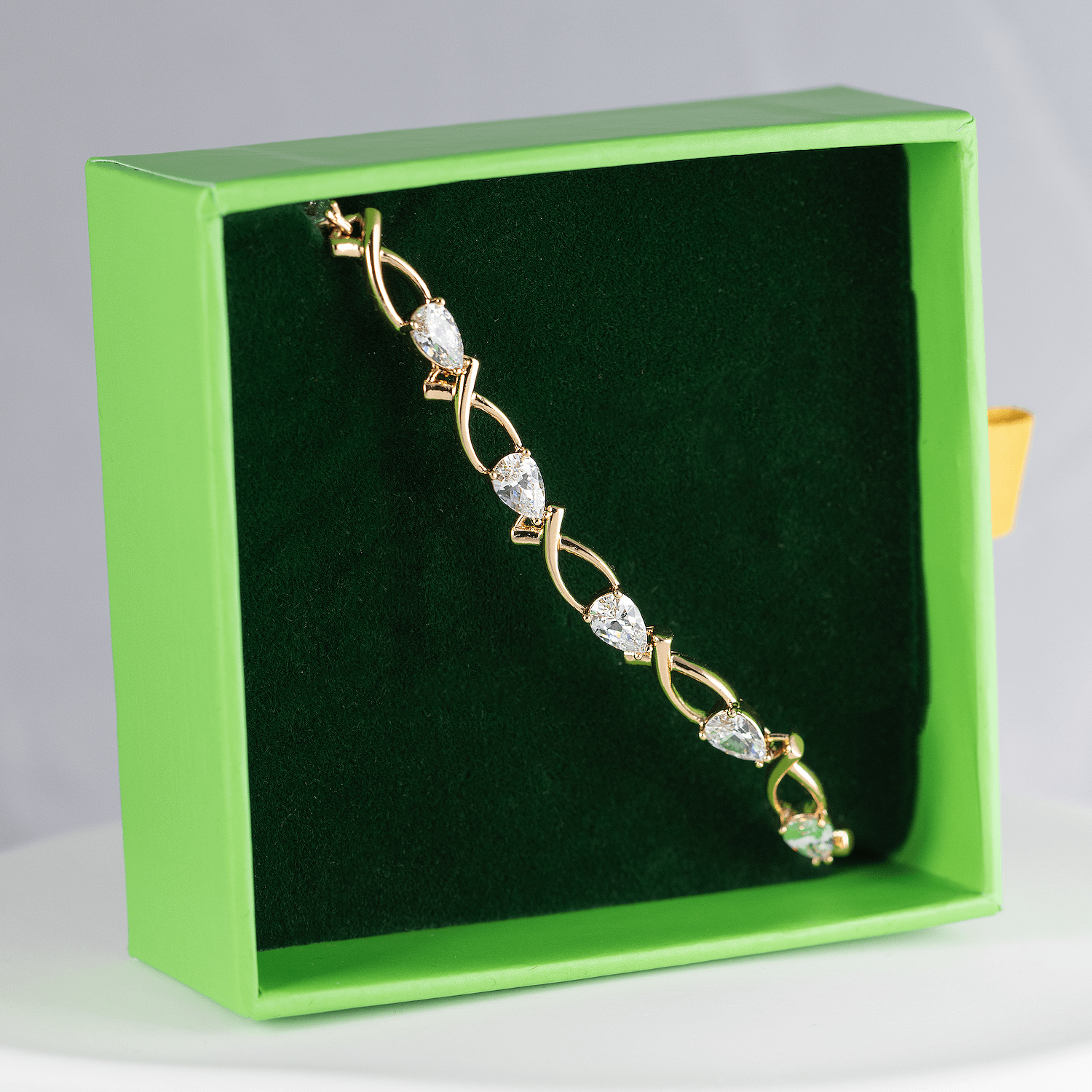 Kristālu un rozā zelta rokas ķēdīte JANA. Klasiska kombinācija, kas piestāvēs gan ikdienai, gan svētku reizēm.