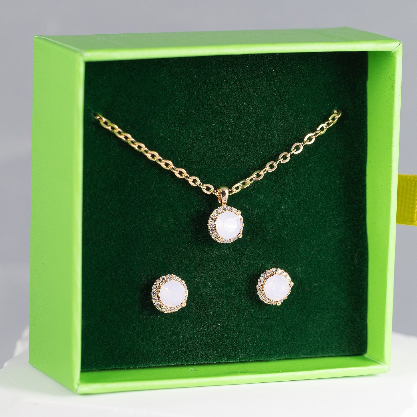 Skaists un izteiksmīgs rotu komplekts KAMĒLIJA - auskariņi ar apaļiem kristāliem un pieskaņota kaklarota! Maigums un neticams mirdzums elegantā kristālu formā! Antialerģiskais rotu komplekta materiāls derēs arī jutīgai ādai.